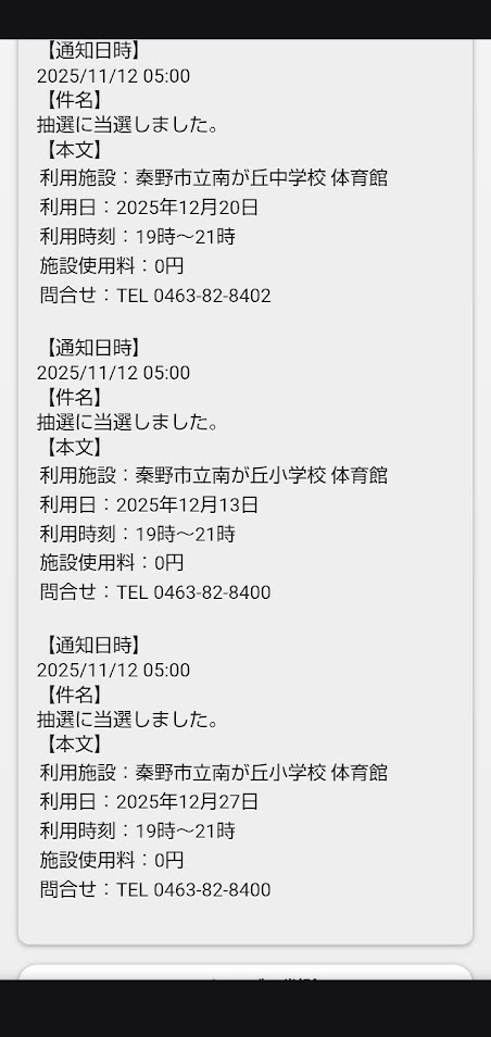 12/27 システム上では予約が出来たのですが、学校から利用許可取り下げの連絡があったのでお休みに
