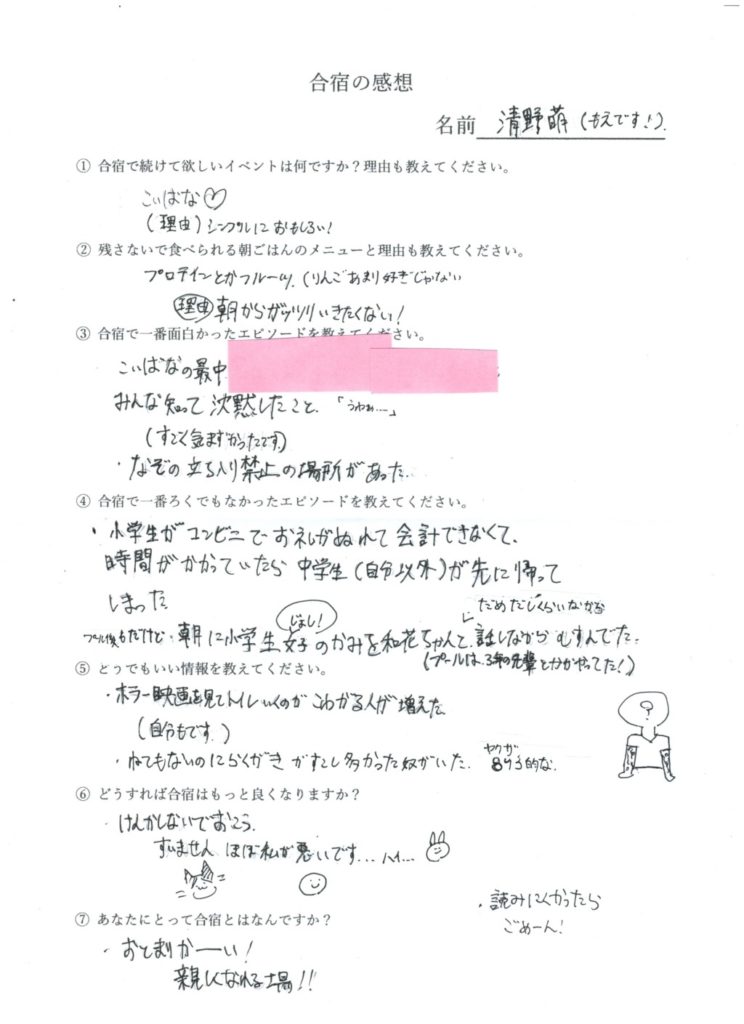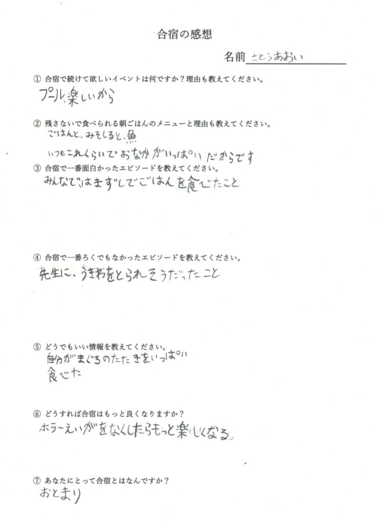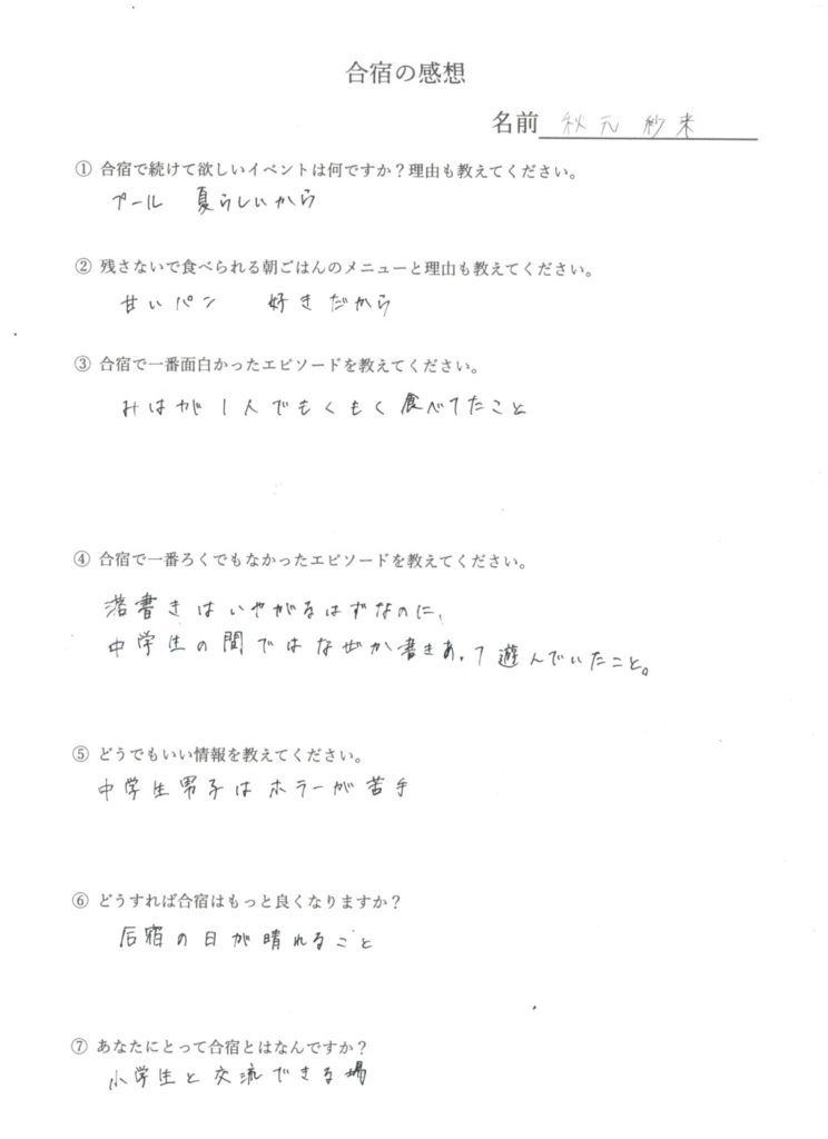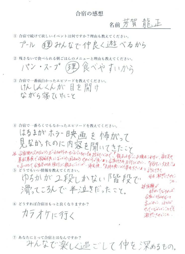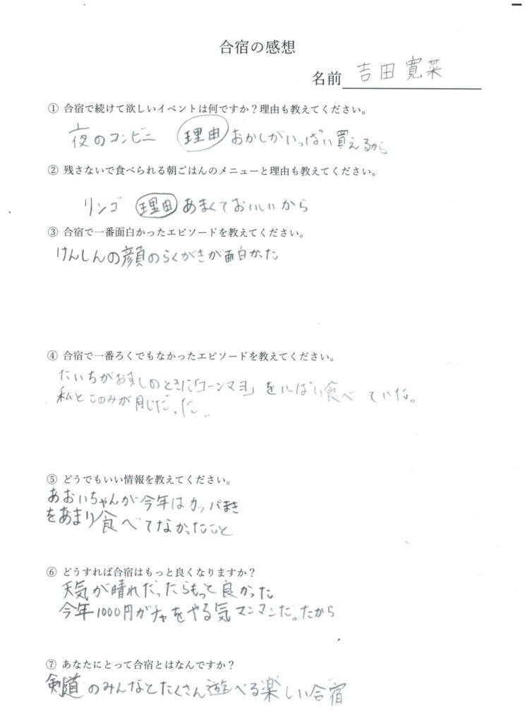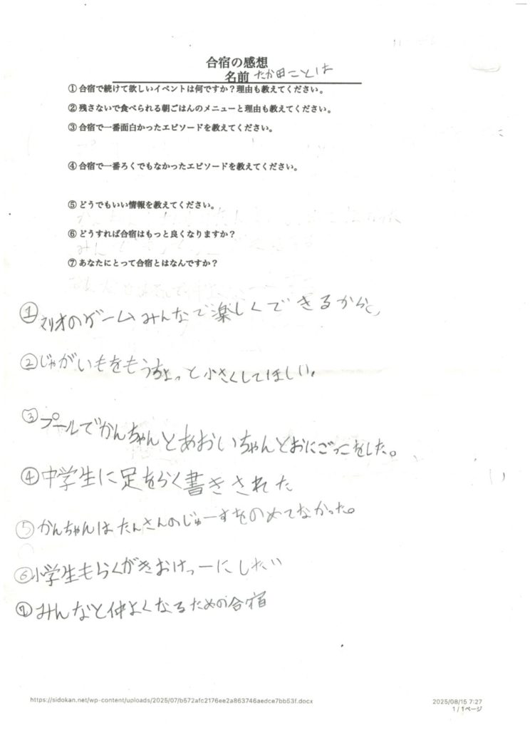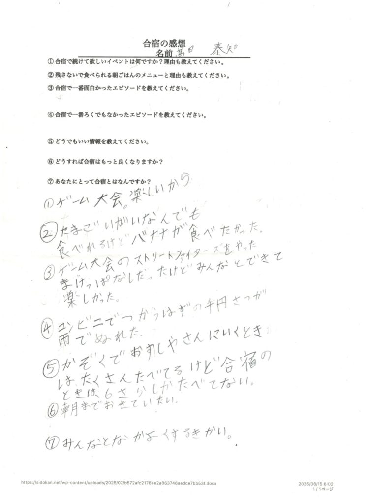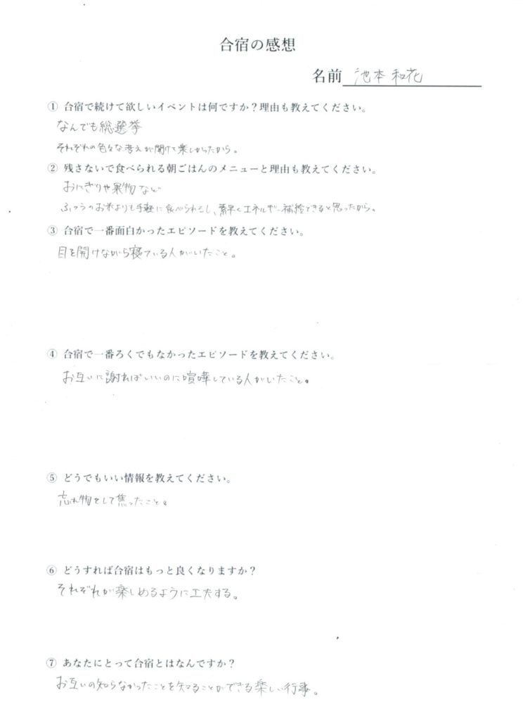 合宿の参加者は反省文を書いて提出してください。