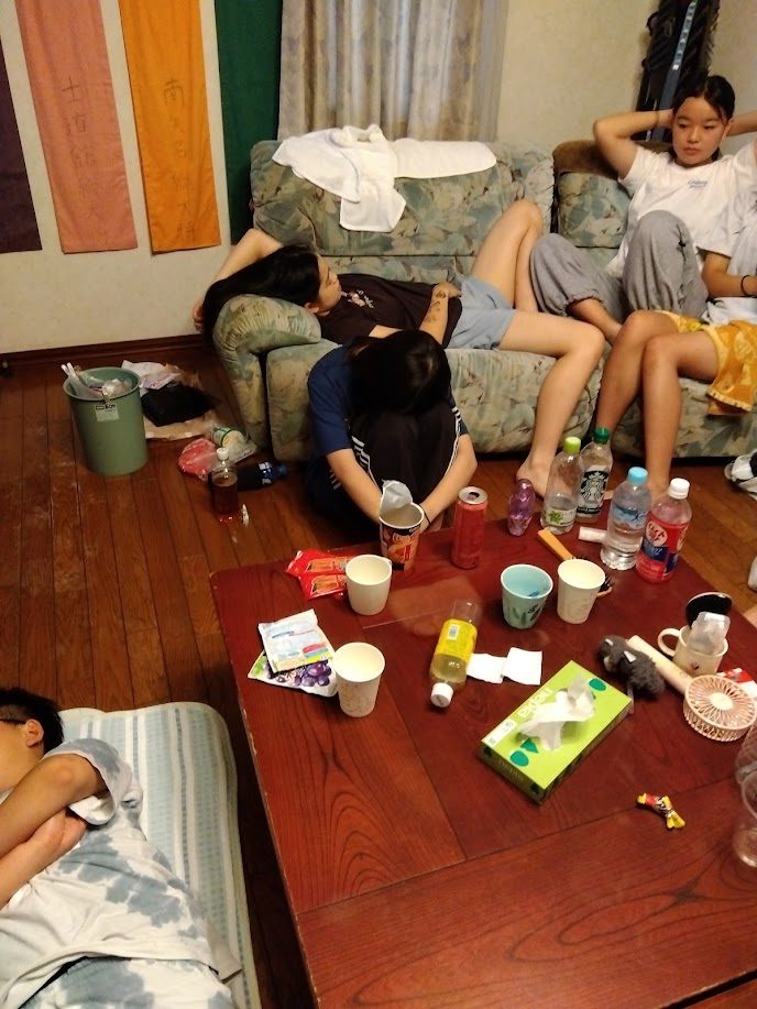 ・ 布団が人数分ないので寝ない